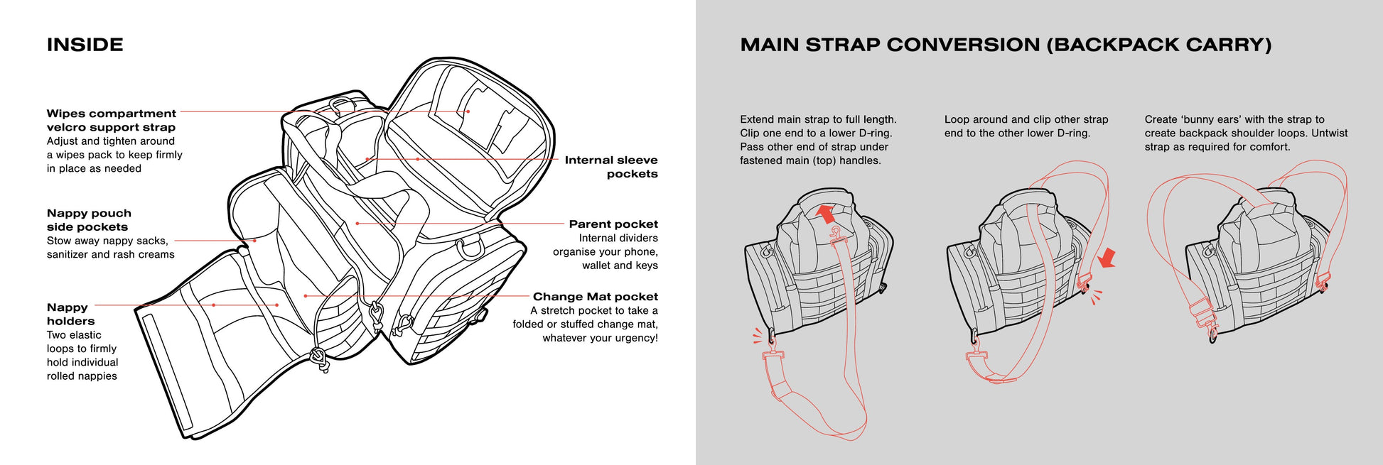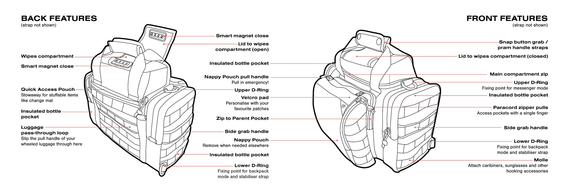 And the best bit? It has a life beyond kids - simply detach the nappy pouch and you’ve got yourself a rugged holdall that snuggly stores camera gear, car tools, bug-out gear, it even perfectly fits a 6 pack of beer.